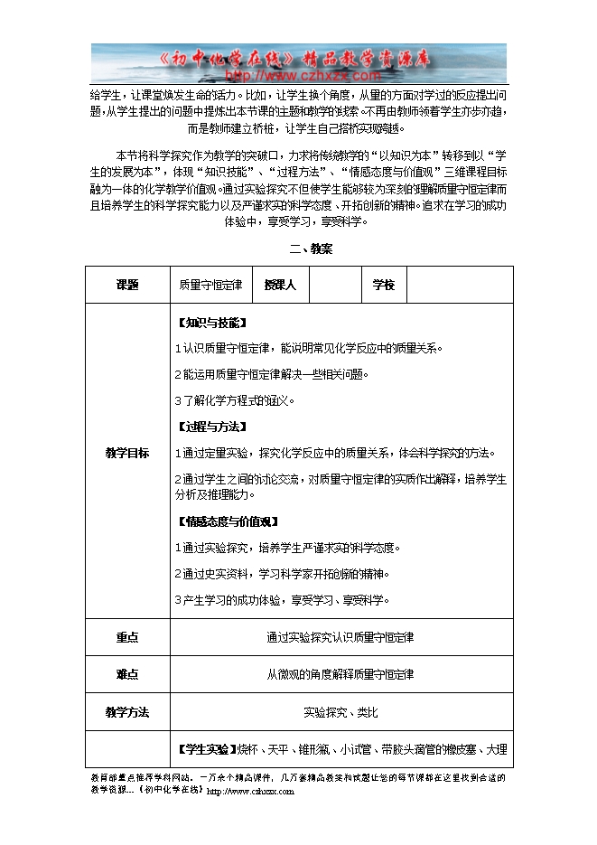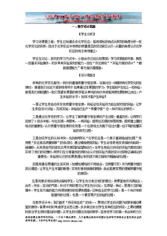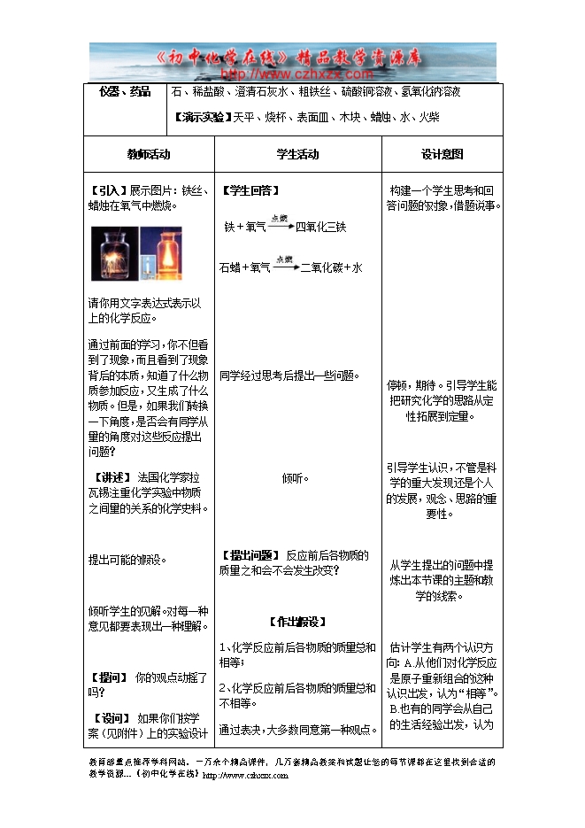 人教版《第五单元 课题1 质量守恒定律》教学设计(方案一)