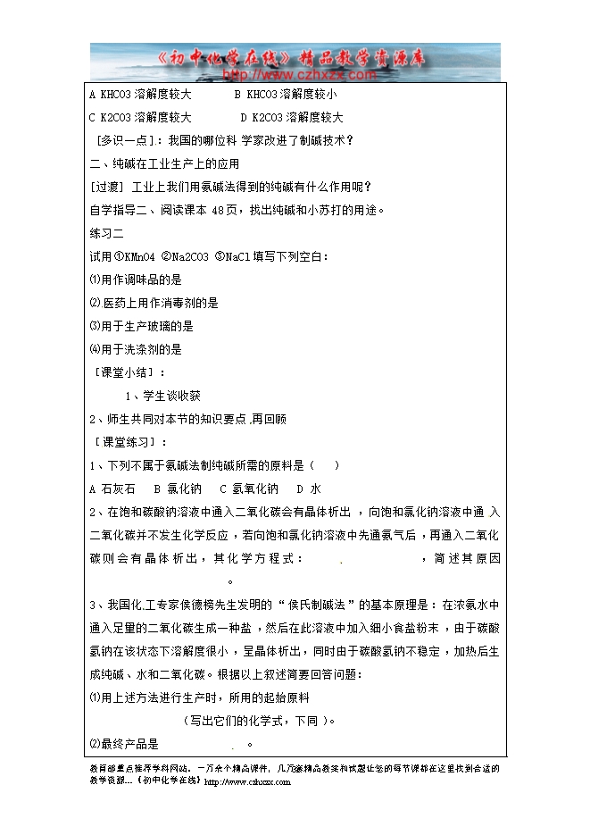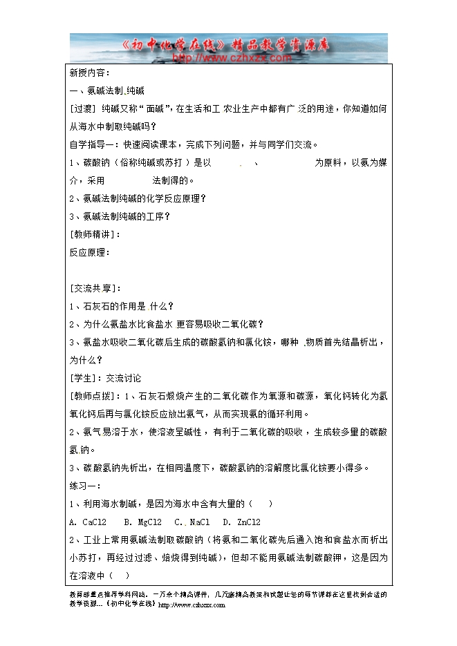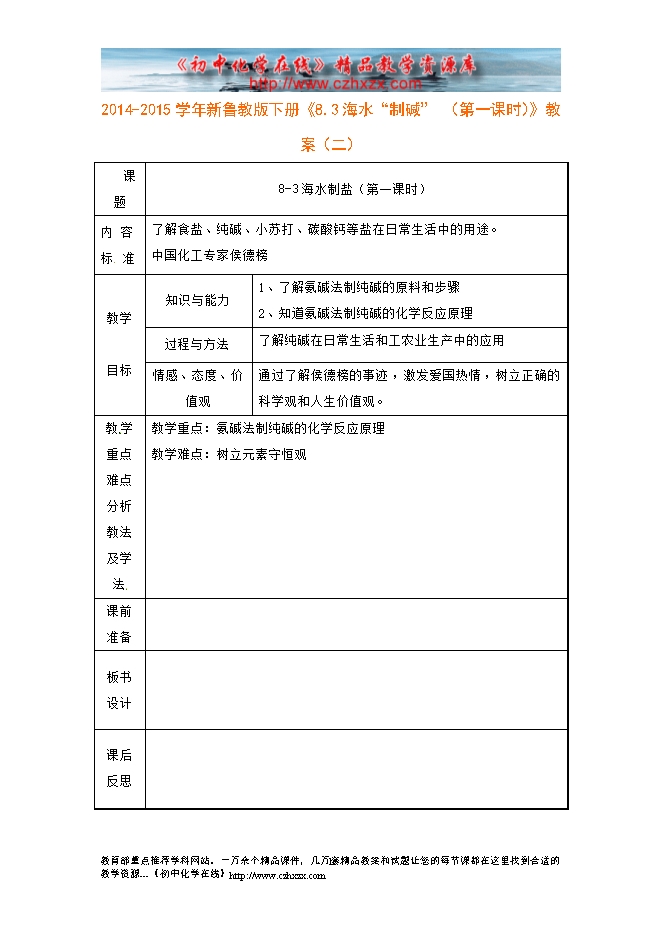 2014-2015学年新鲁教版下册《8.3海水“制碱” (第一课时)》教案(二)