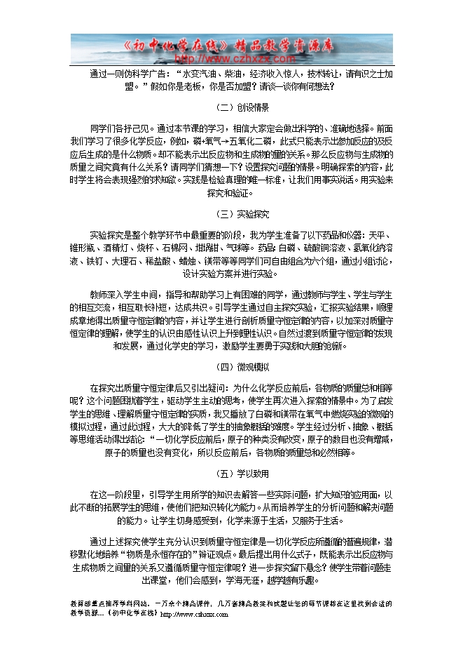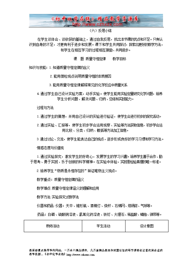 人教版《第五单元课题1 质量守恒定律》教学设计(方案六)