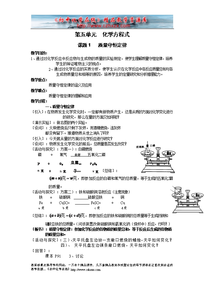 人教版《第五单元课题1 质量守恒定律》教学设计(方案七)