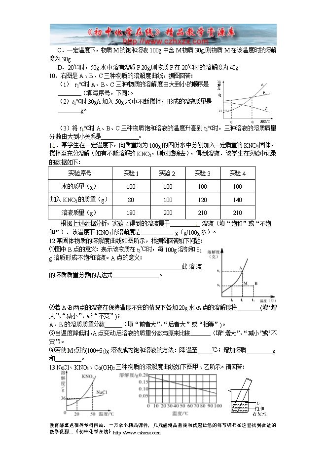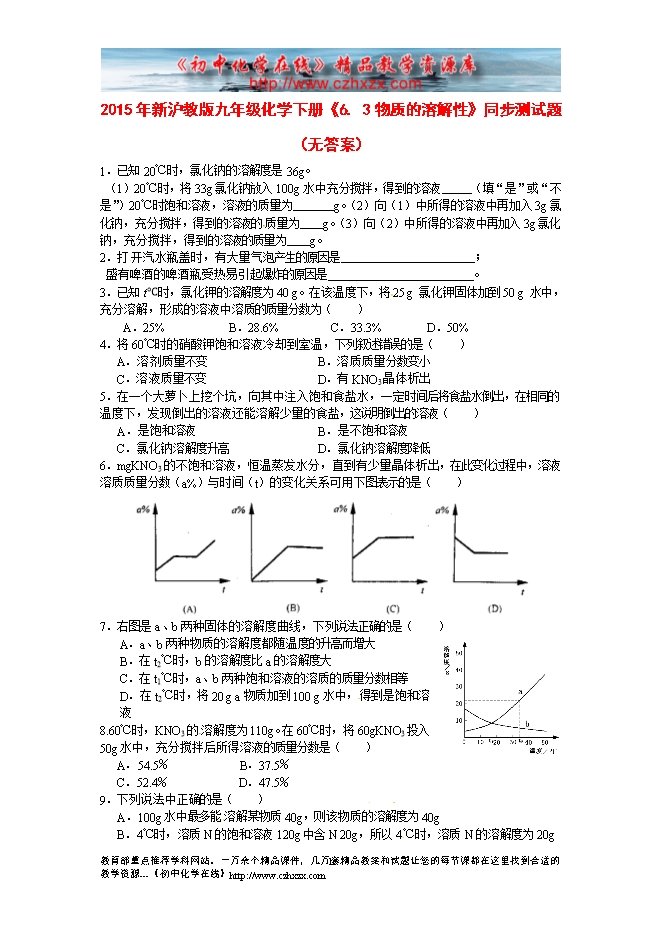 2015年新沪教版九年级化学下册《6. 3物质的溶解性》同步测试题(无答案)