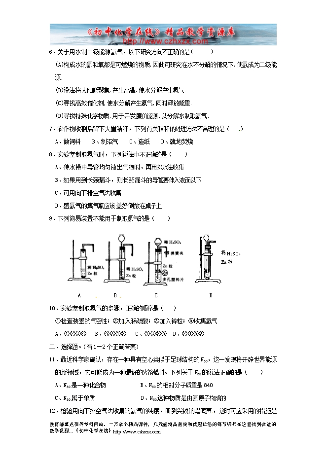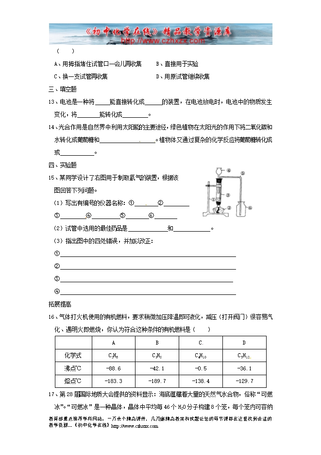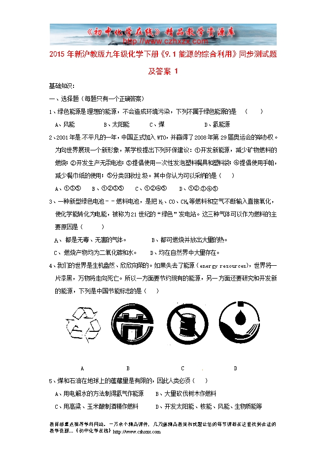 2015年新沪教版九年级化学下册《9.1能源的综合利用》同步测试题及答案 1