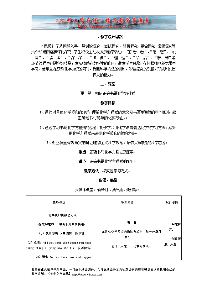 人教版《第五单元课题2 如何正确书写化学方程式》教学设计(方案二)