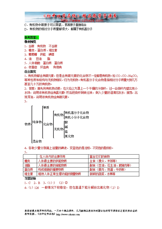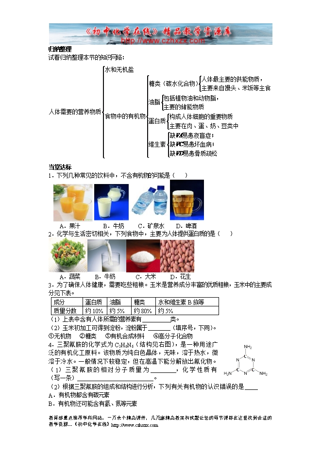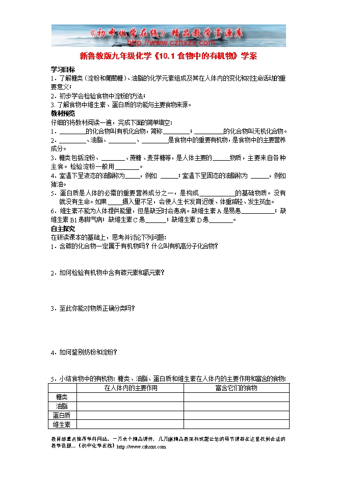 新鲁教版九年级化学《10.1食物中的有机物》学案