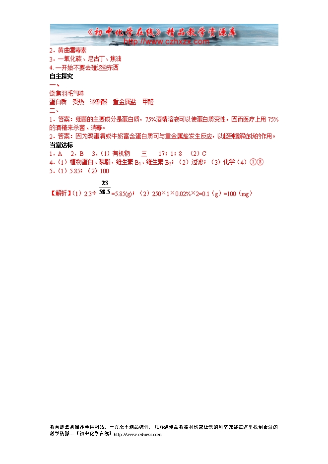 - 上一份资料:新鲁教版九年级化学《10.3远离有毒物质》教案