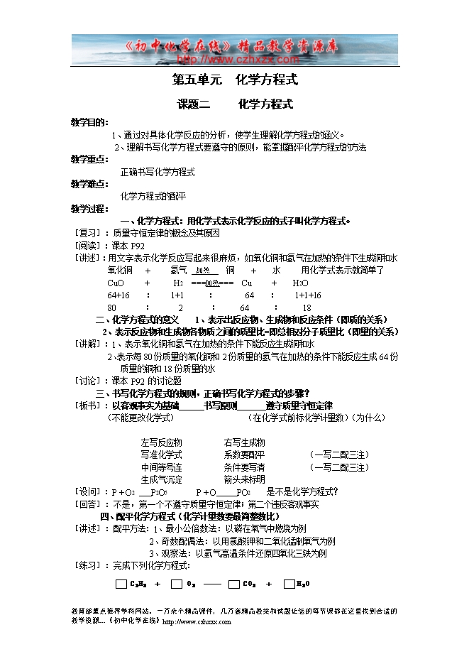 人教版《第五单元课题2 如何正确书写化学方程式》教学设计(方案四)