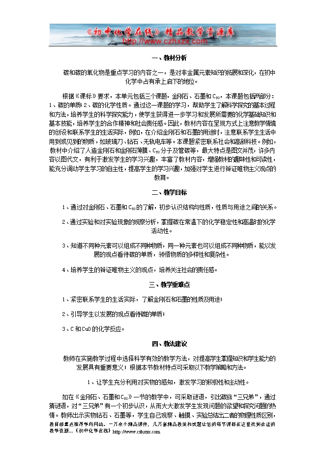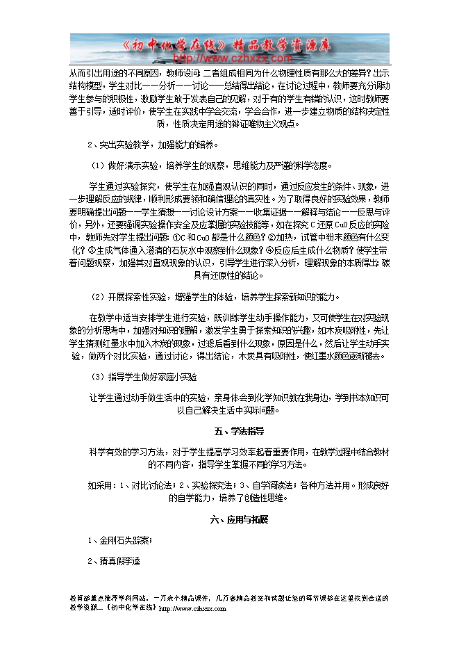 人教版《第六单元 课题1 金刚石、石墨和C60》说课稿