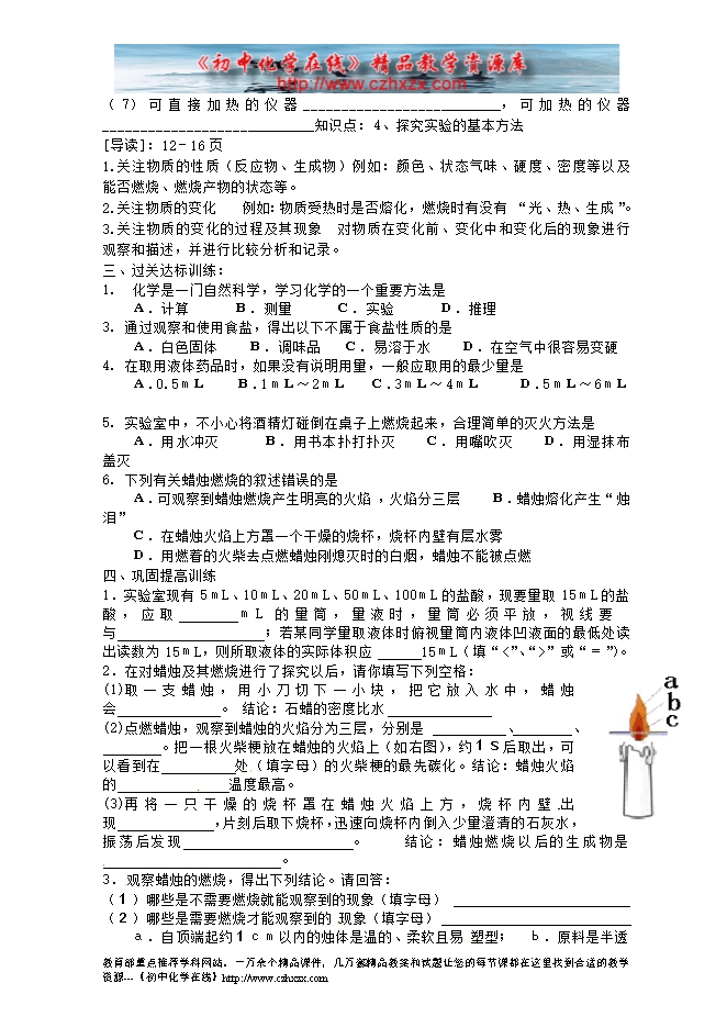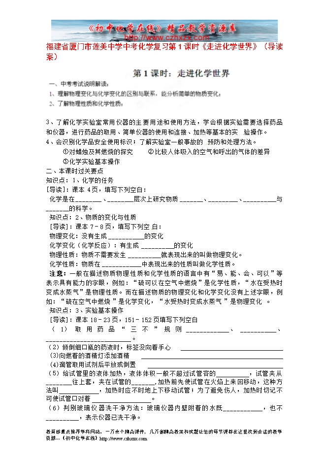 福建省厦门市莲美中学中考化学复习第1课时《走进化学世界》(导读案)