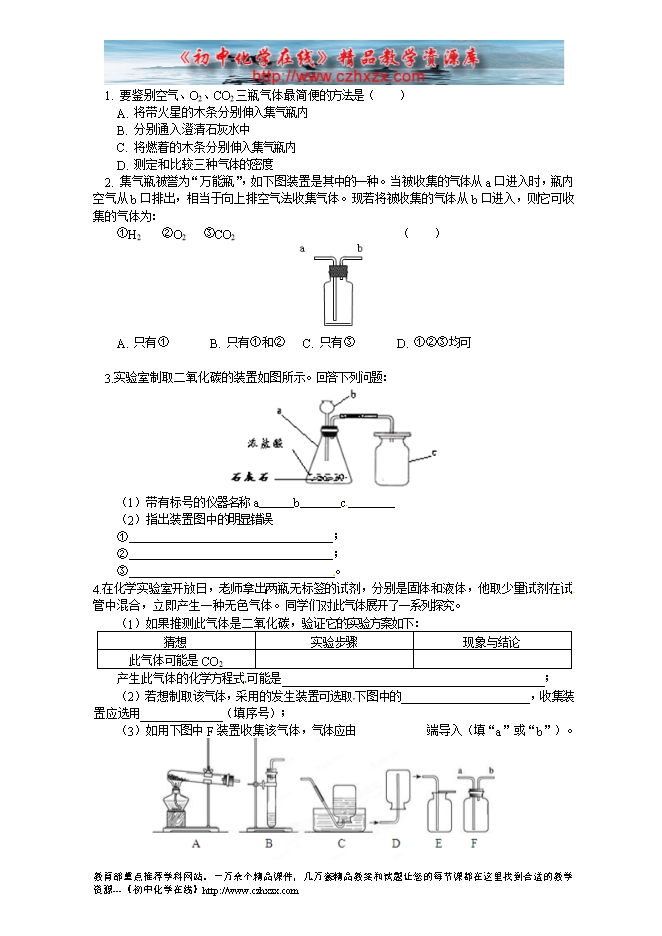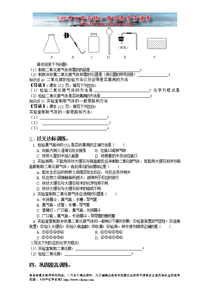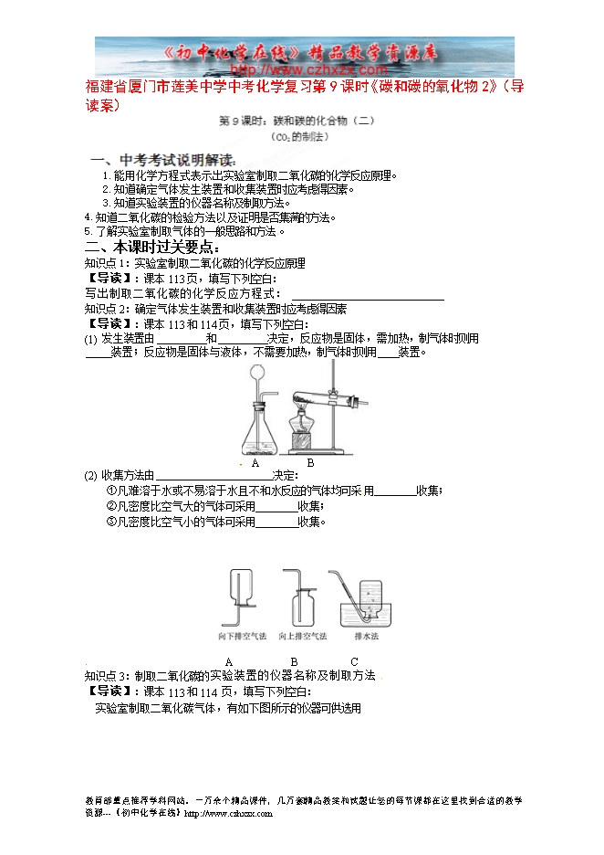 福建省厦门市莲美中学中考化学复习第9课时《碳和碳的氧化物2》(导读案)