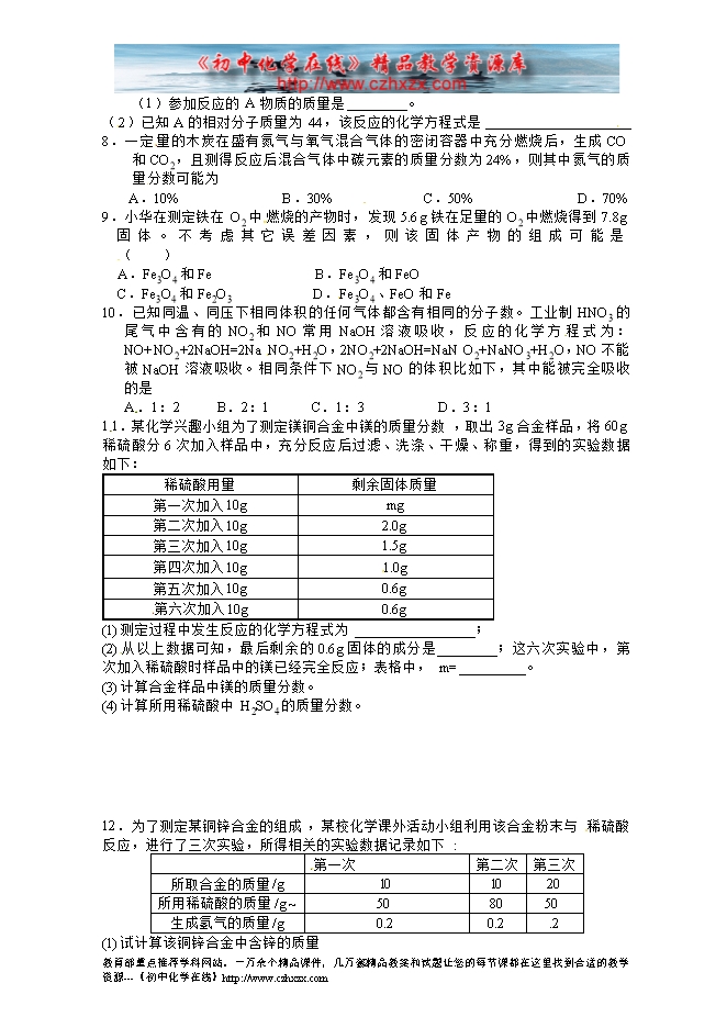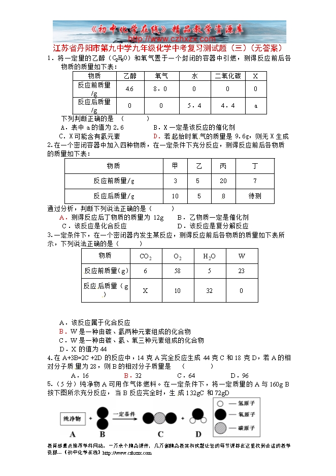 江苏省丹阳市第九中学九年级化学中考复习测试题(三)(无答案)