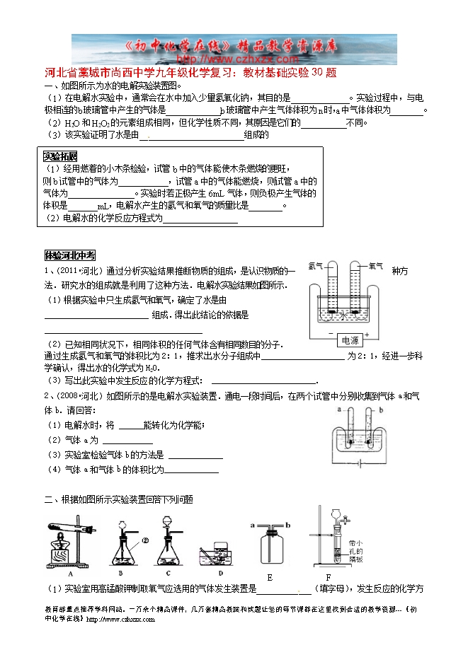 河北省藁城市尚西中学九年级化学复习:教材基础实验30题