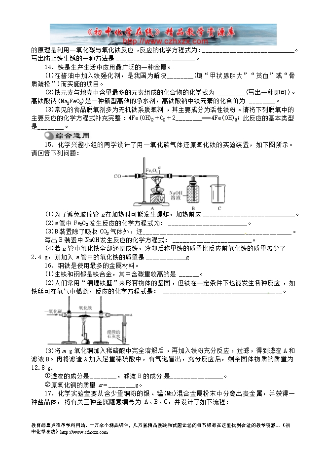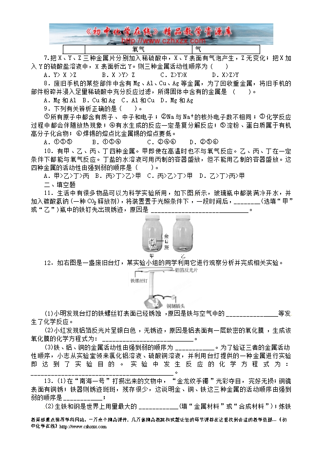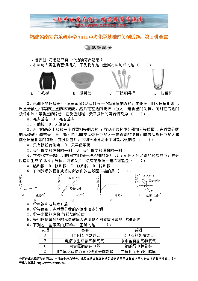 福建省南安市乐峰中学2014中考化学基础过关测试题:第4讲 金属