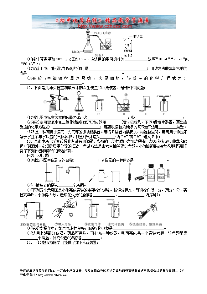 福建省南安市乐峰中学2014中考化学基础过关测试题:第18讲 常见气体的制取