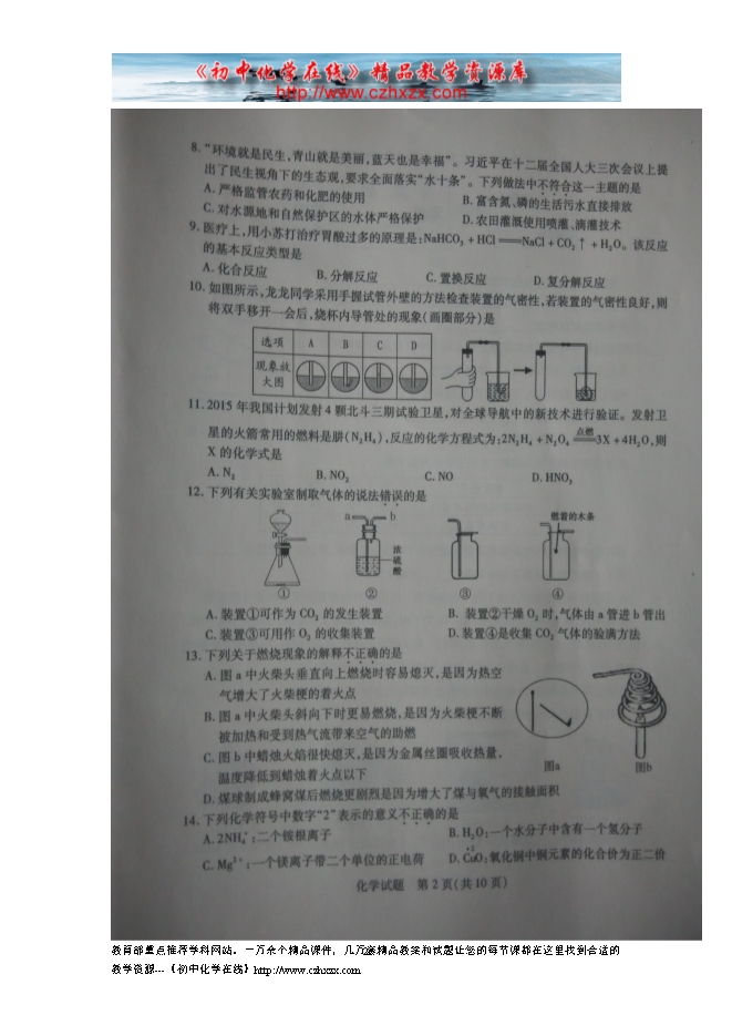 所属专辑: 《2015年各省市中考化学真题》专辑