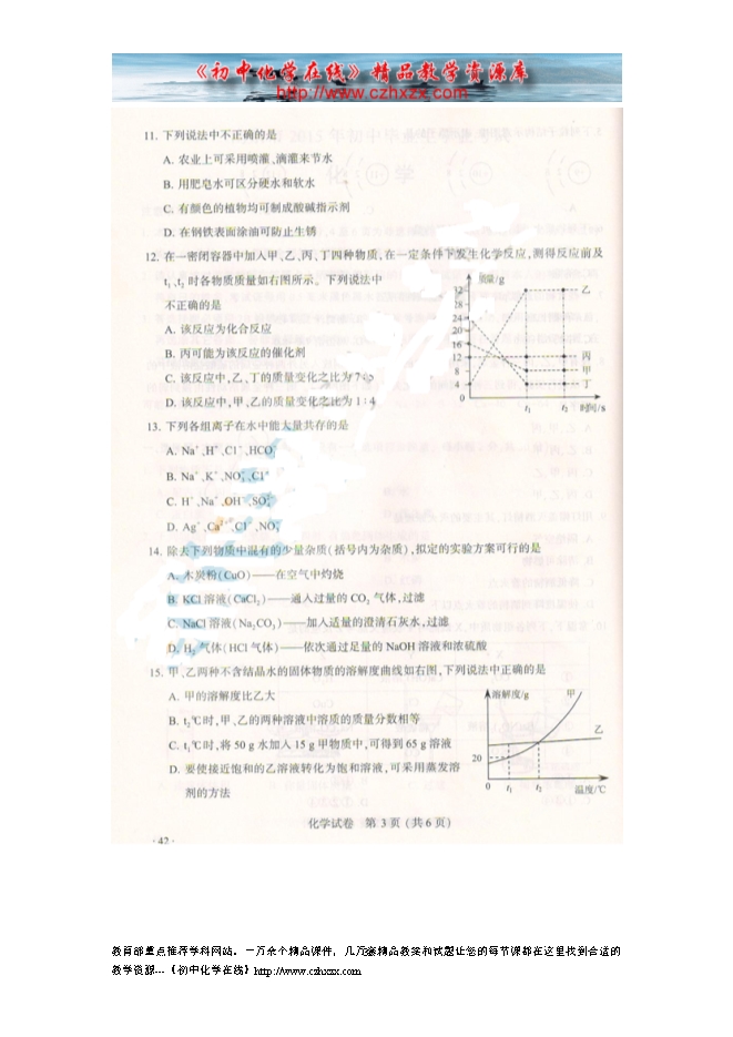 所属专辑: 《2015年各省市中考化学真题》专辑