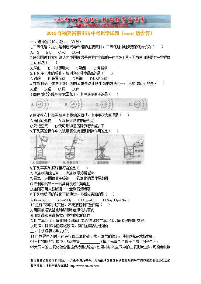 所属专辑: 《2015年各省市中考化学真题》专辑