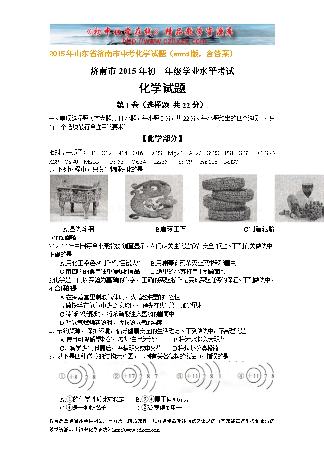 所属专辑: 《2015年各省市中考化学真题》专辑