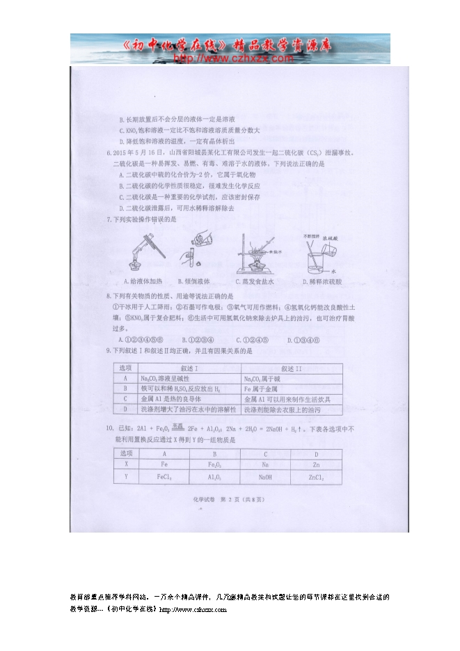 所属专辑: 《2015年各省市中考化学真题》专辑