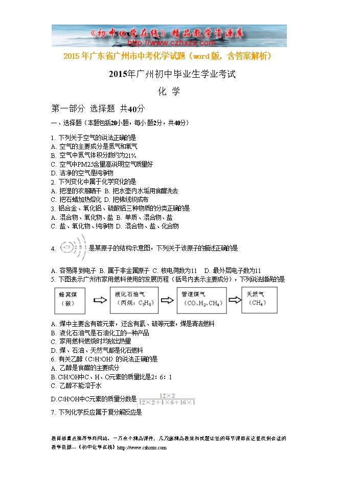 2015年广东省广州市中考化学试题(word版,含答案解析)