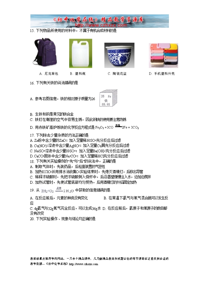 所属专辑: 《2015年各省市中考化学真题》专辑