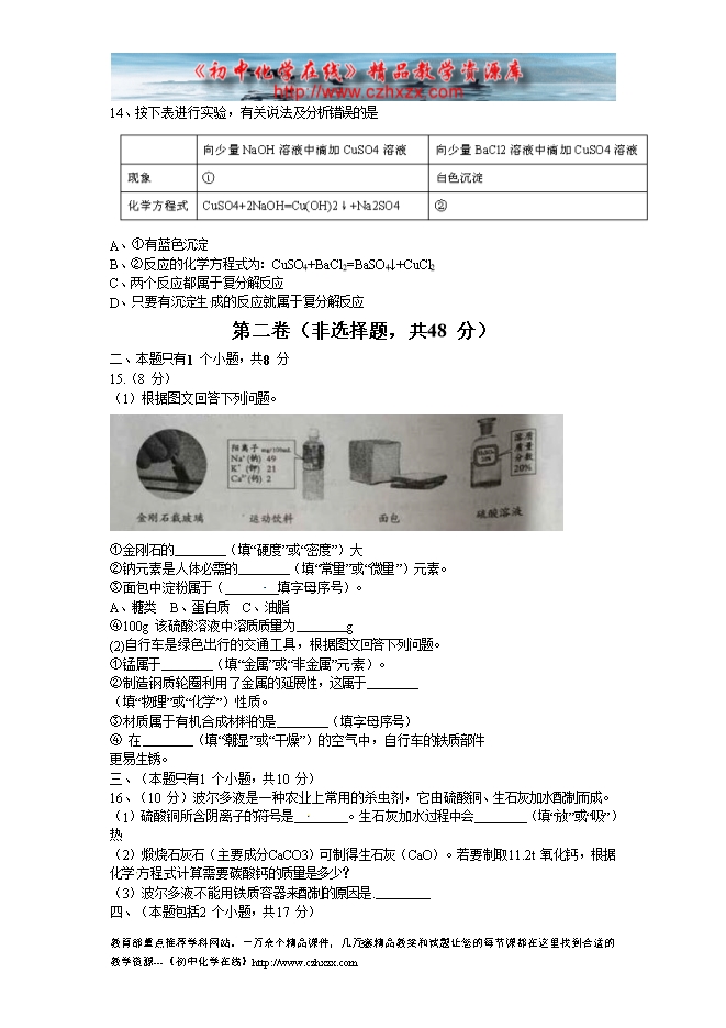 所属专辑: 《2015年各省市中考化学真题》专辑