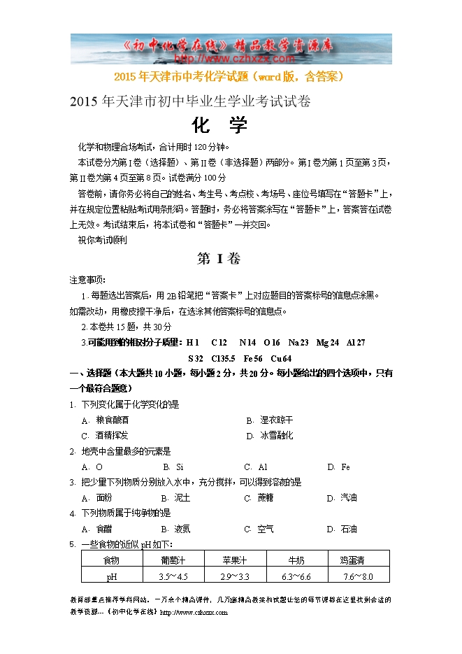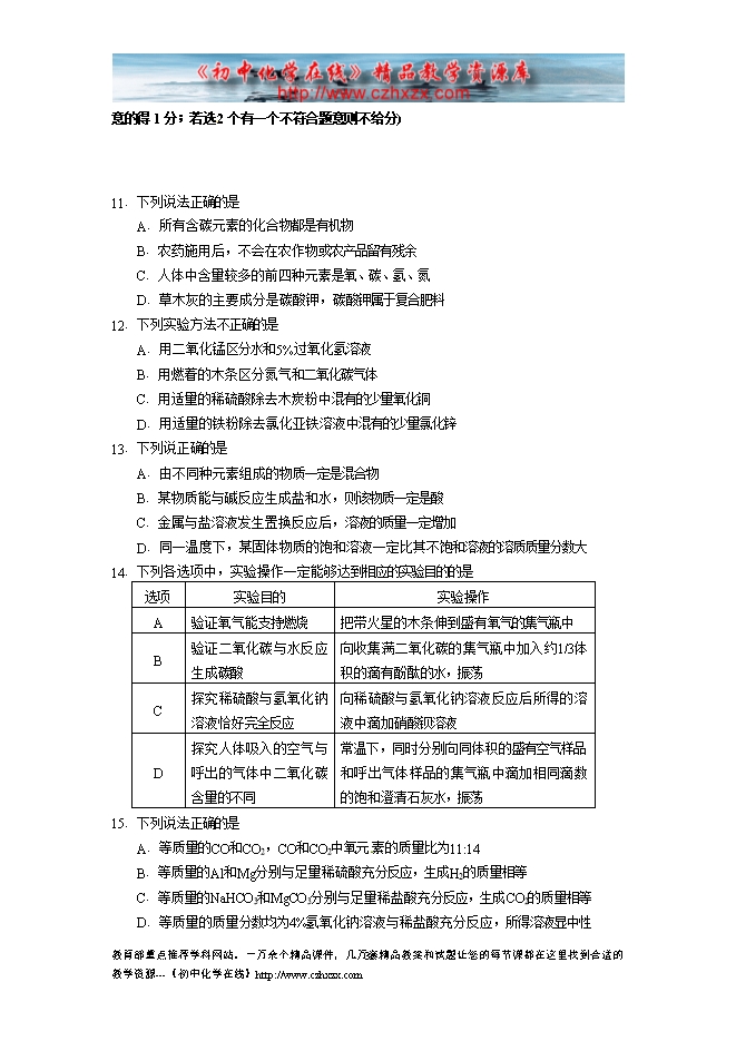 所属专辑: 《2015年各省市中考化学真题》专辑