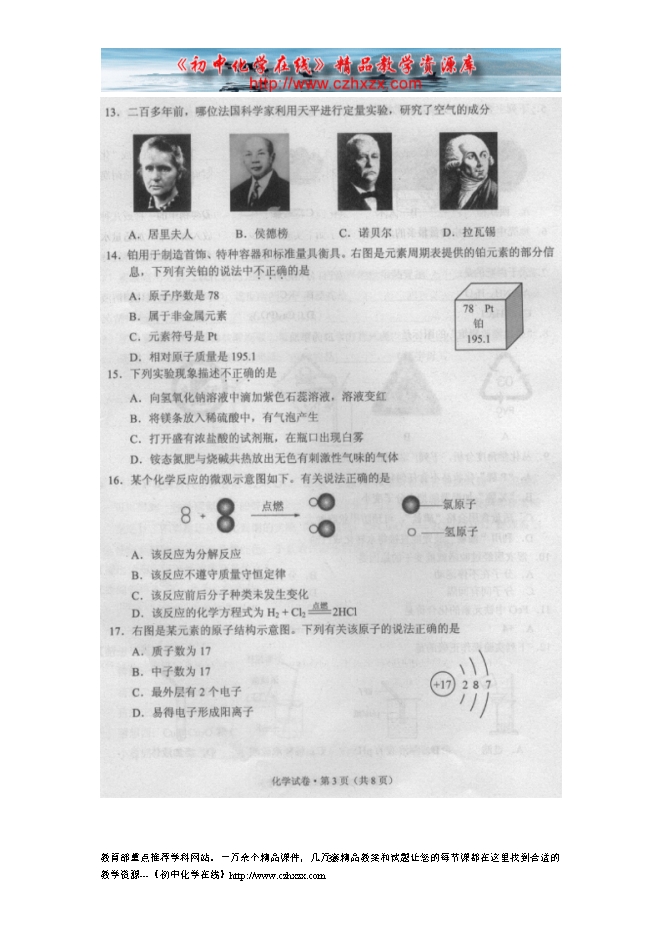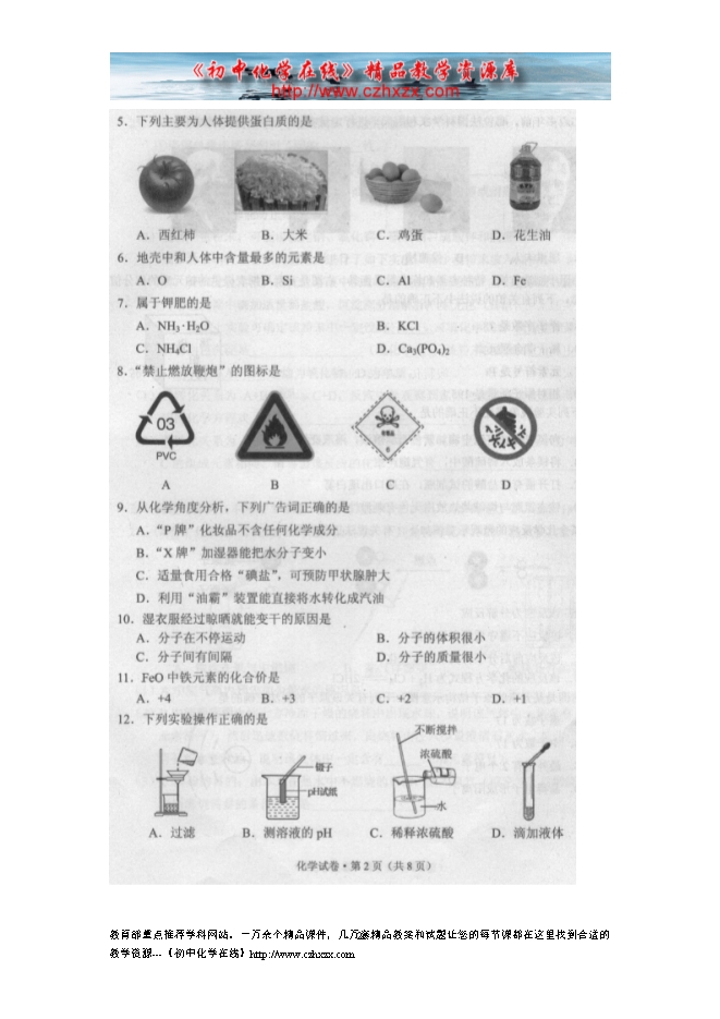 所属专辑: 《2015年各省市中考化学真题》专辑