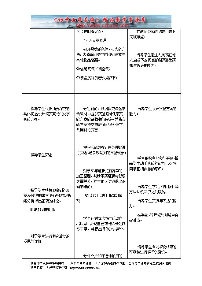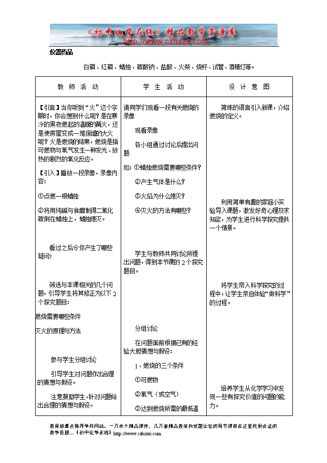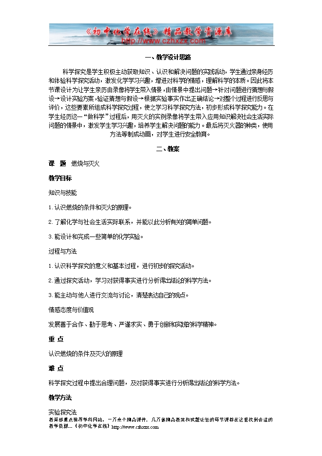 人教版《第七单元课题1 燃烧和灭火》教学设计(方案二)