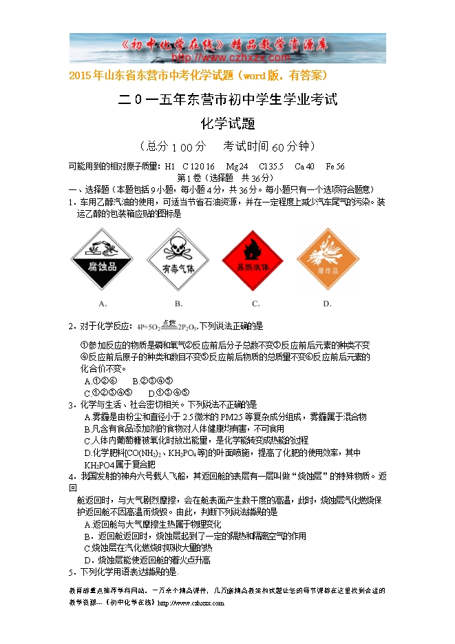所属专辑: 《2015年各省市中考化学真题》专辑