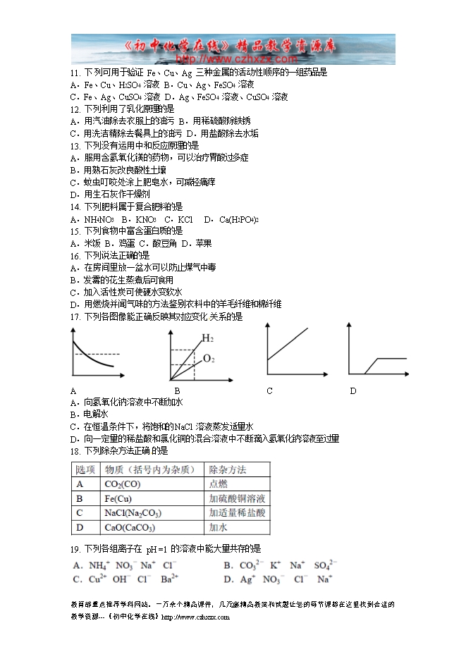 所属专辑: 《2015年各省市中考化学真题》专辑