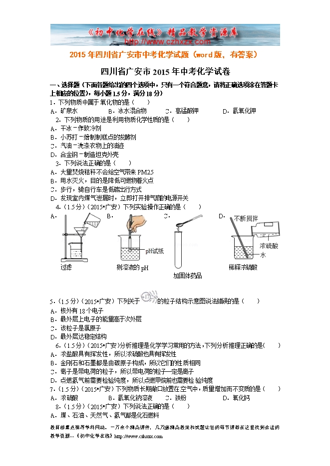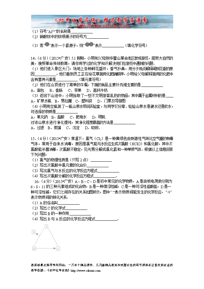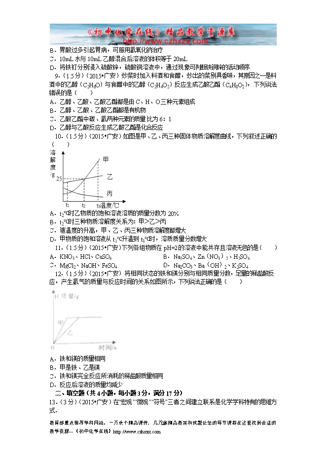 所属专辑: 《2015年各省市中考化学真题》专辑