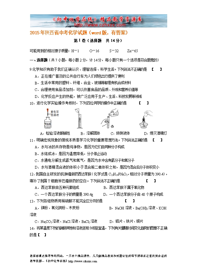 所属专辑: 《2015年各省市中考化学真题》专辑