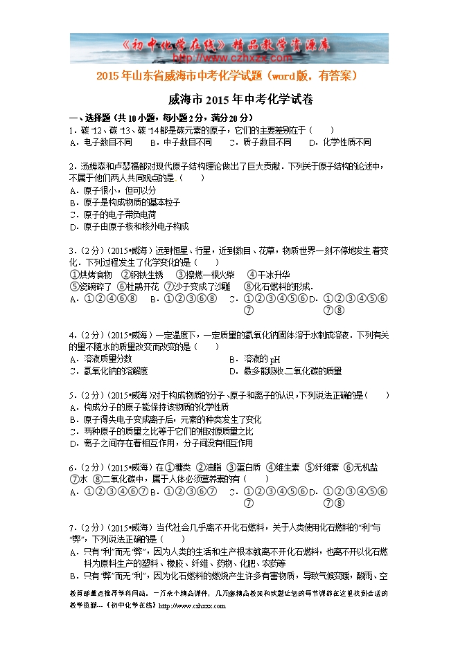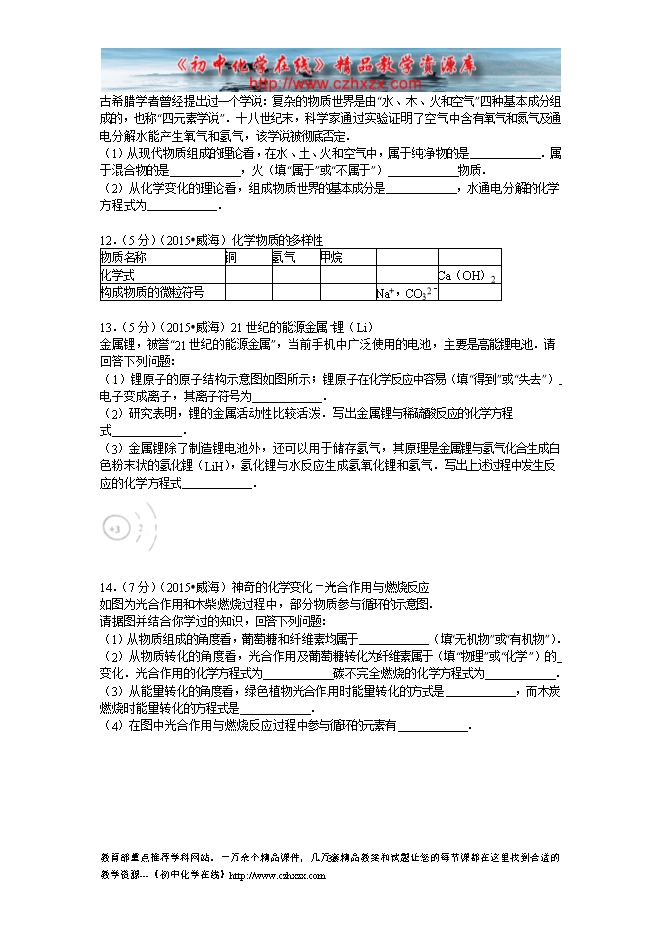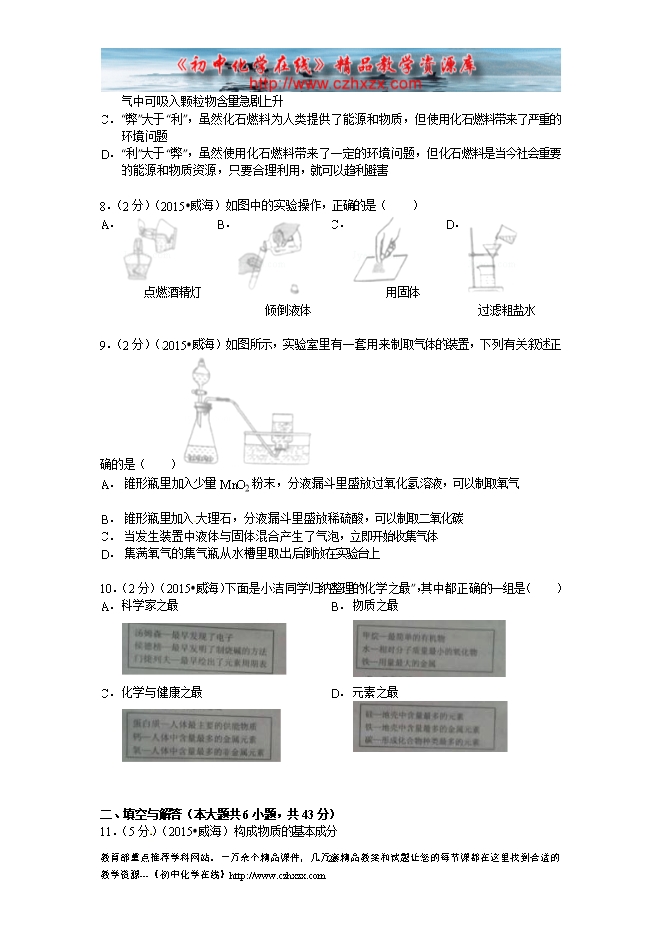 所属专辑: 《2015年各省市中考化学真题》专辑
