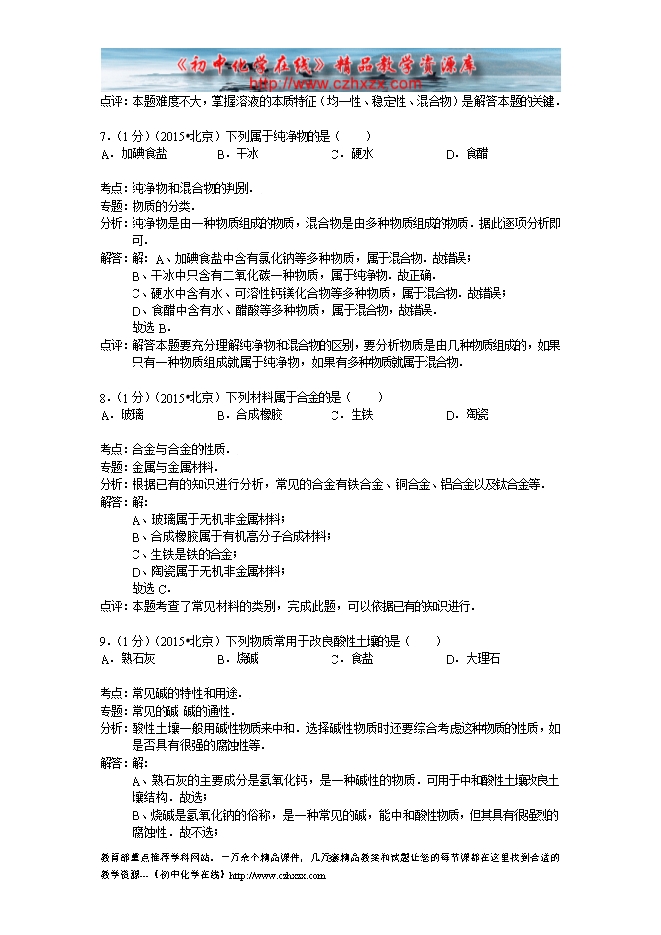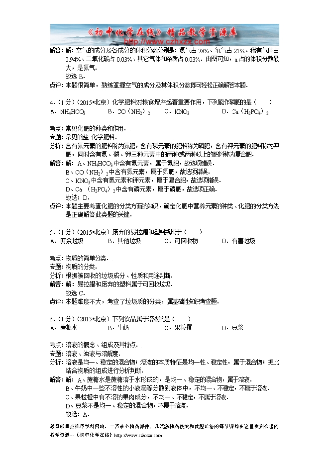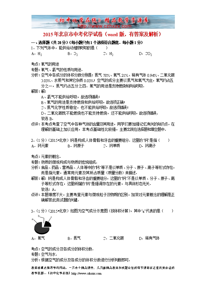 2015年北京市中考化学试卷(word版,有答案及解析)