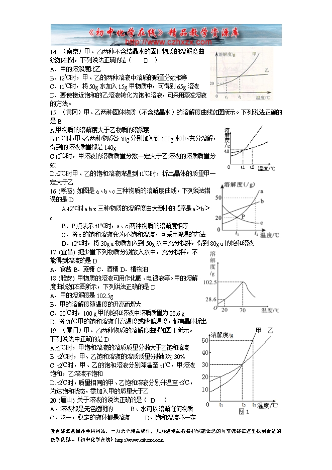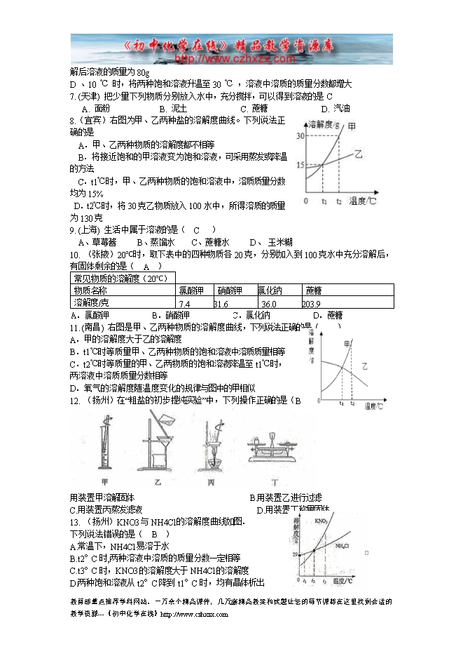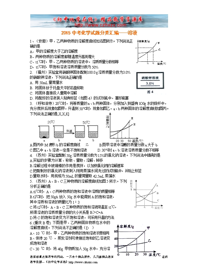 2015中考化学试题分类汇编——溶液