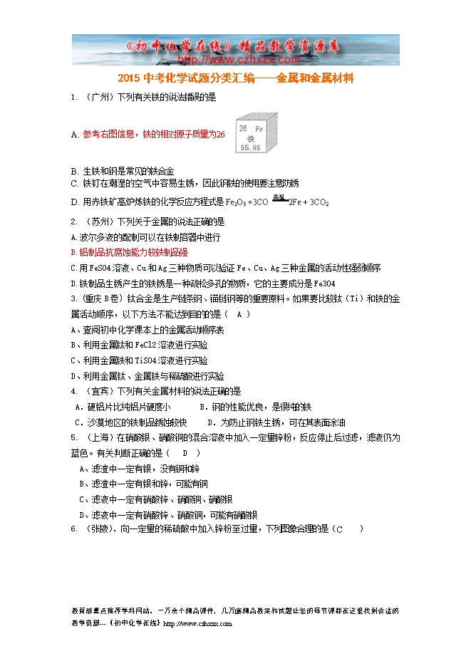 - 上一份试卷:2015中考化学试题分类汇编——溶液