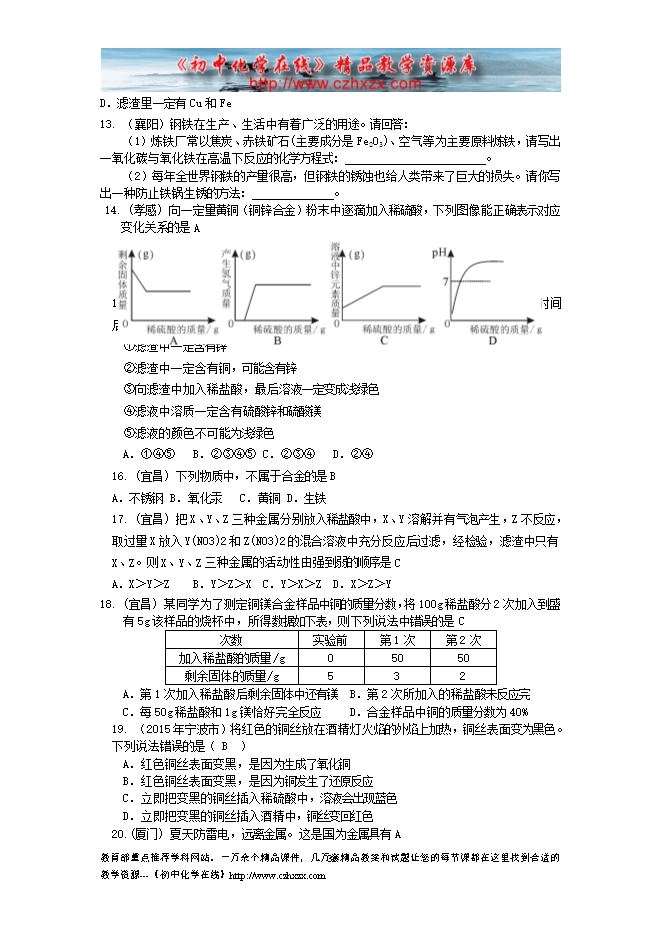 - 下一份试卷:2015中考化学试题分类汇编——燃烧和灭火