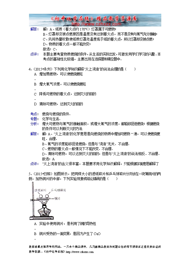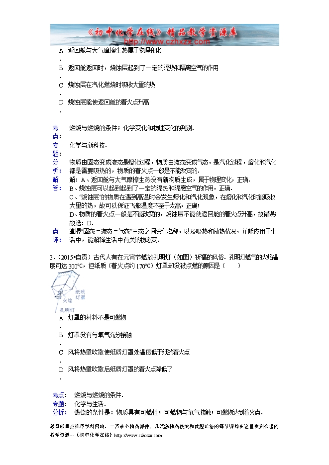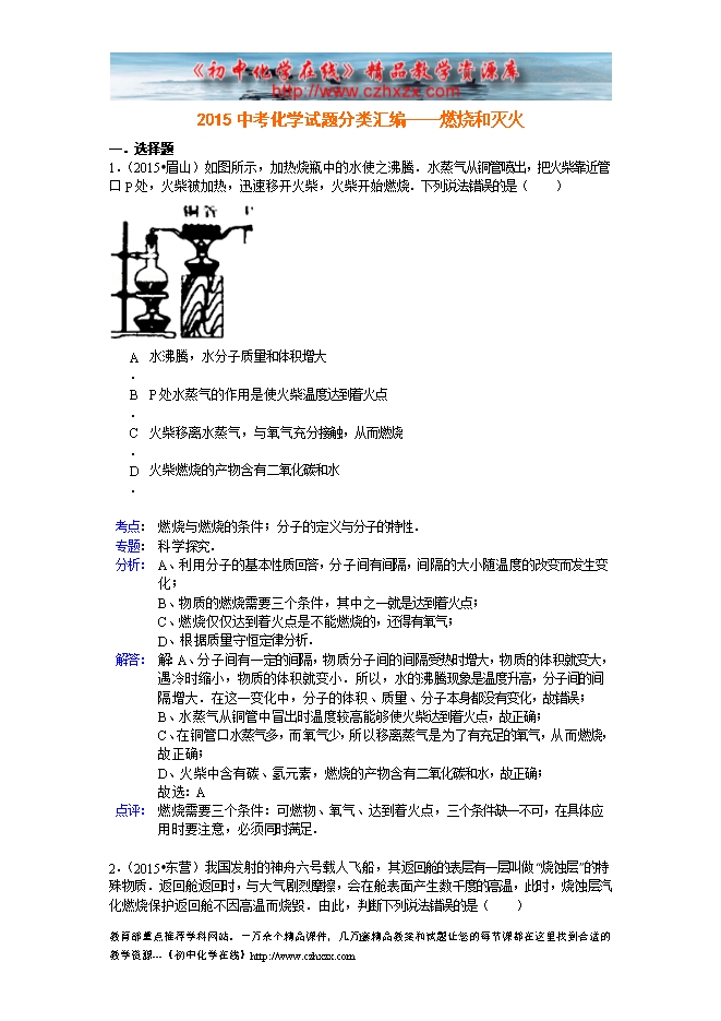 - 下一份试卷:2015中考化学试题分类汇编——燃烧及燃料利用