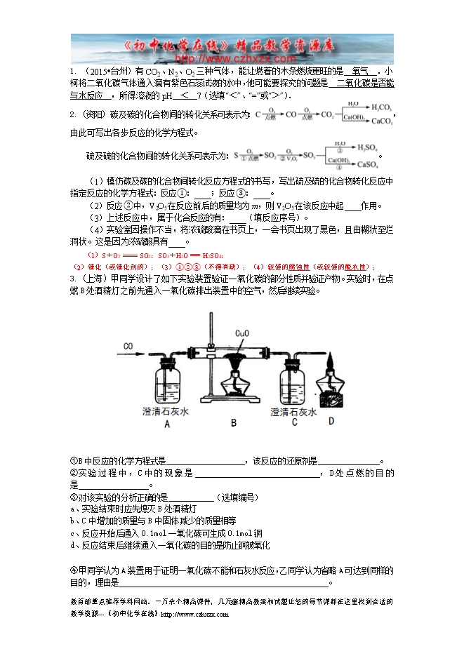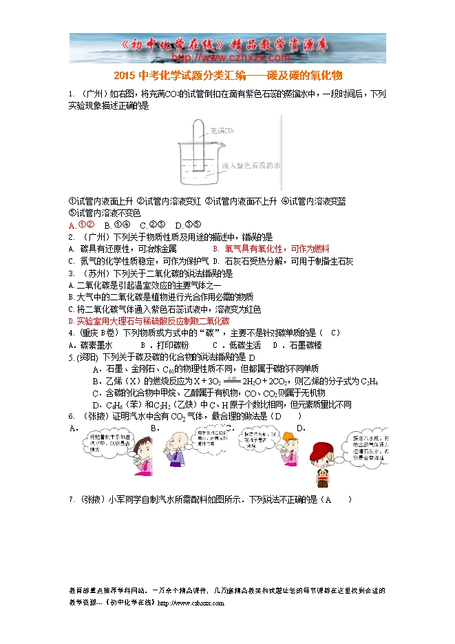 2015中考化学试题分类汇编——碳及碳的氧化物