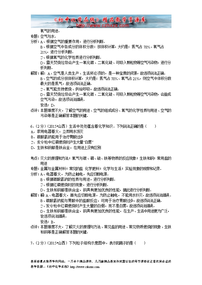 所属专辑: 《2015年各省市中考化学真题》专辑