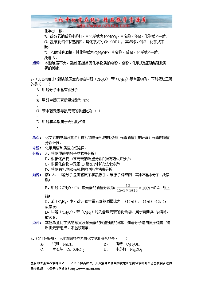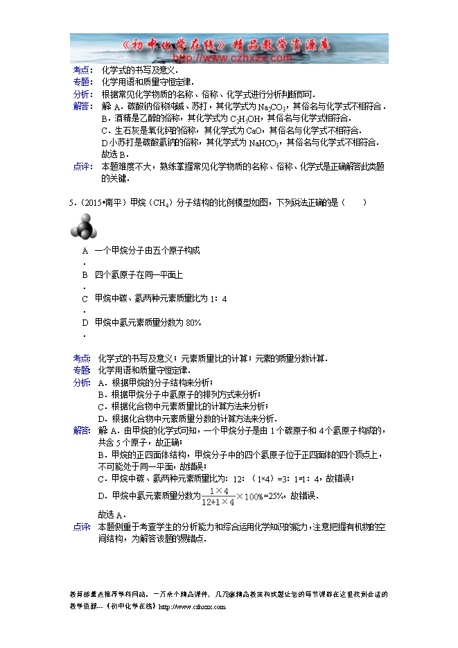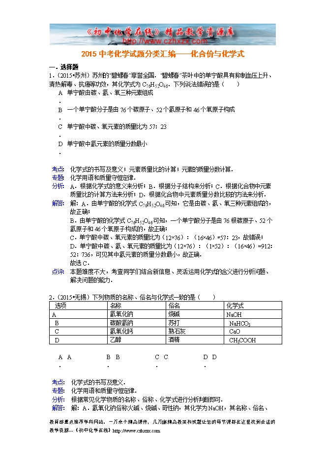 - 下一份试卷:2015中考化学试题分类汇编——化学方程式的有关计算