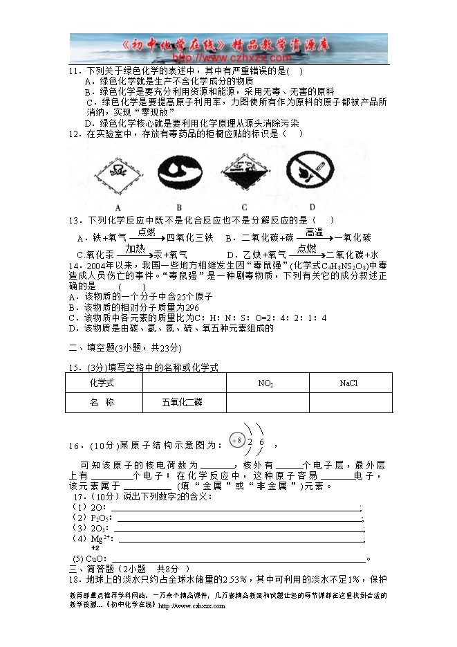 - 上一份试卷:人教版九年级化学上学期期中测试题和参考答案