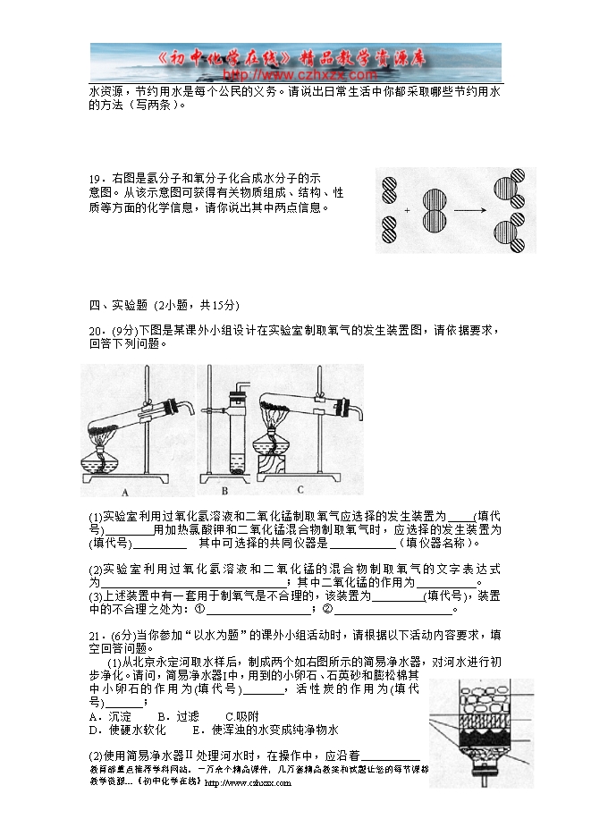 2010—2011学年人教版九年级化学级化学上学期期中测试题和参考答案