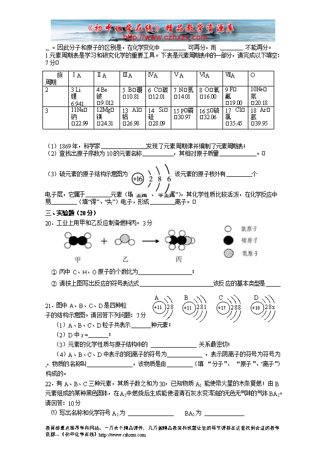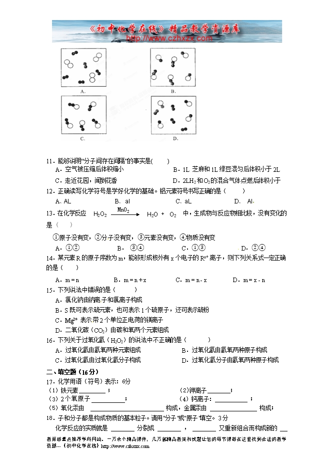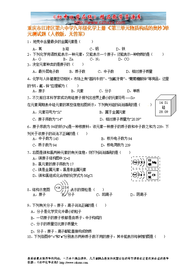 重庆市江津区第六中学九年级化学上册《第三单元 物质构成的奥妙》单元测试题(人教版,无答案)