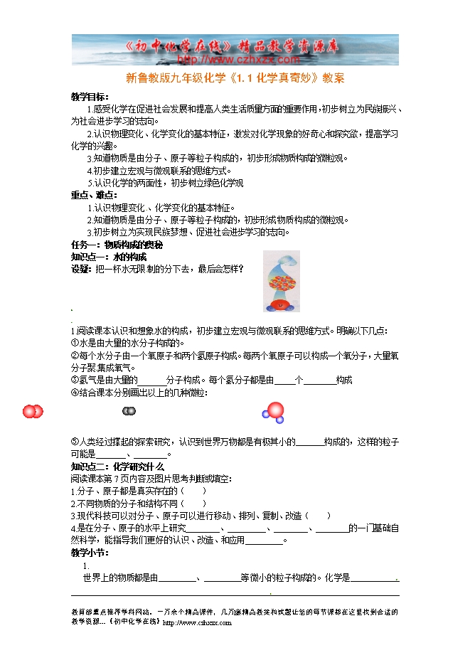 - 下一份资料:新鲁教版九年级化学《1.1化学真奇妙》学案