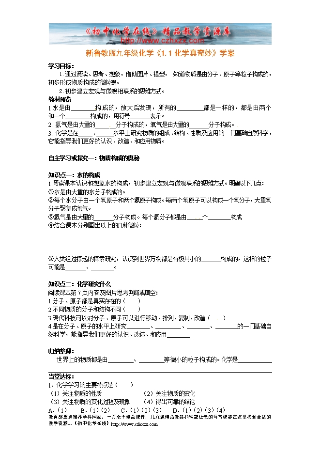 - 上一份资料:新鲁教版九年级化学《1.1化学真奇妙》教案
