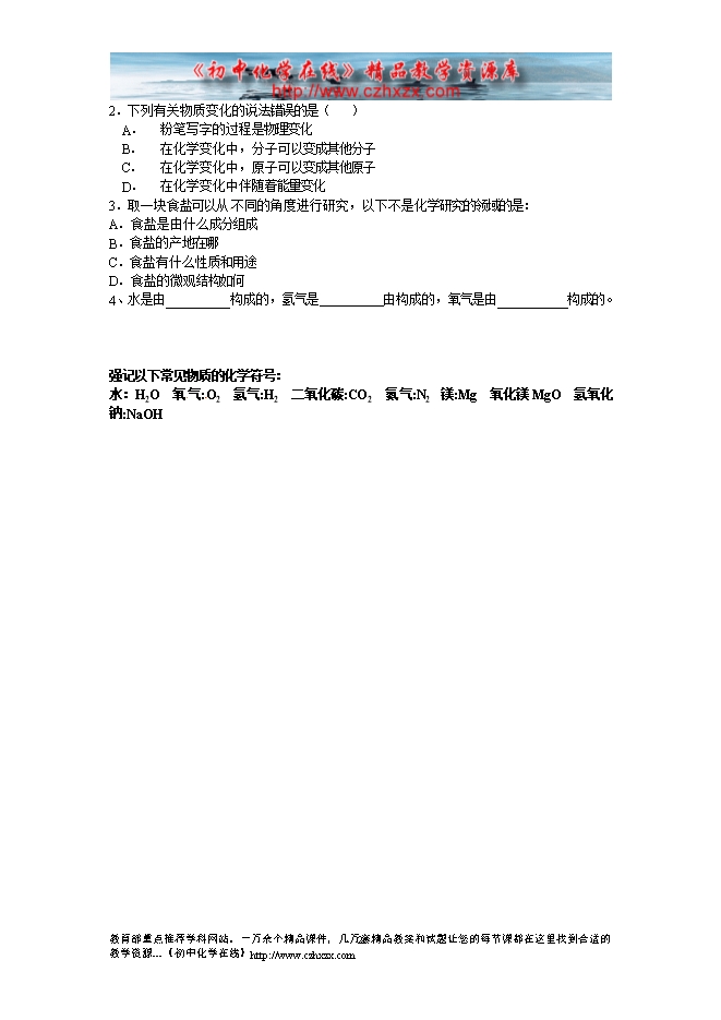 - 下一份资料:新鲁教版九年级化学《1.2体验化学探究》教案