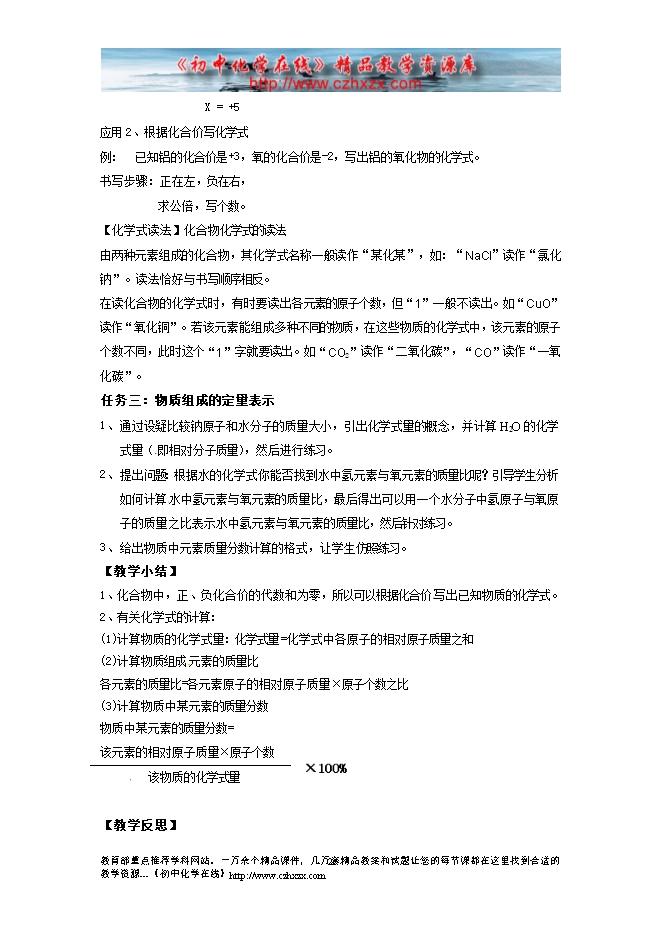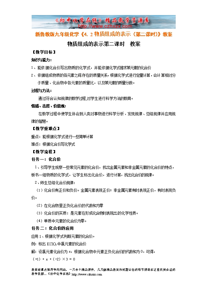 新鲁教版九年级化学《4.2物质组成的表示(第二课时)》教案