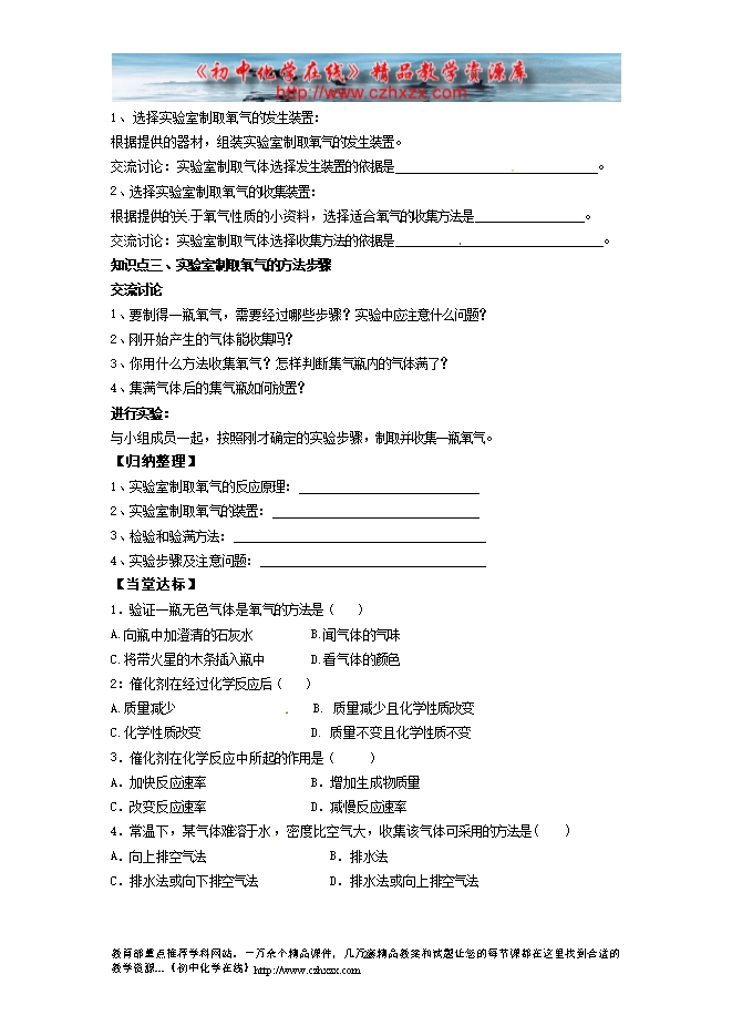 - 下一份资料:新鲁教版九年级化学《4.3氧气(第二课时)》学案