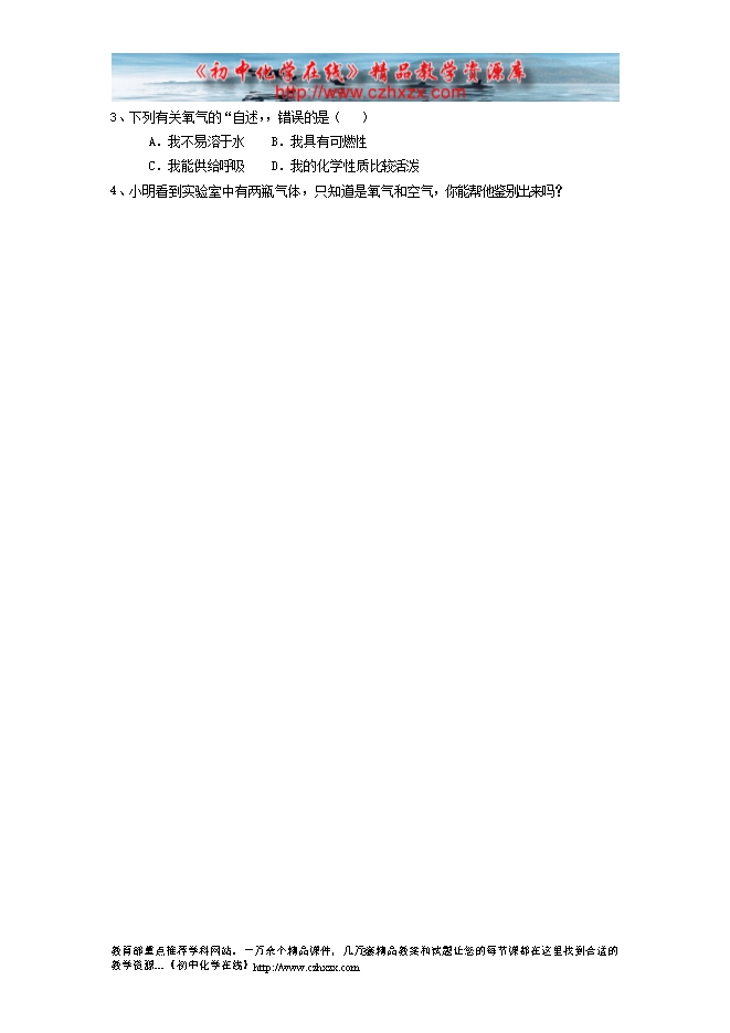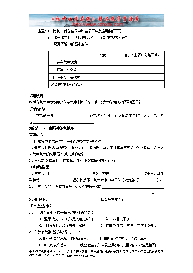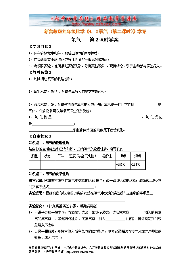 - 上一份资料:新鲁教版九年级化学《4.3氧气(第一课时)》学案